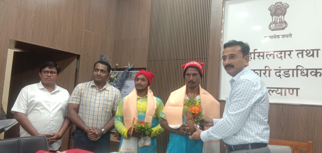 पुरात अडकलेल्या तिघांचा जीव वाचविण्या-या बाप लेकाचा कल्याण तहसीलदारांकडून सत्कार